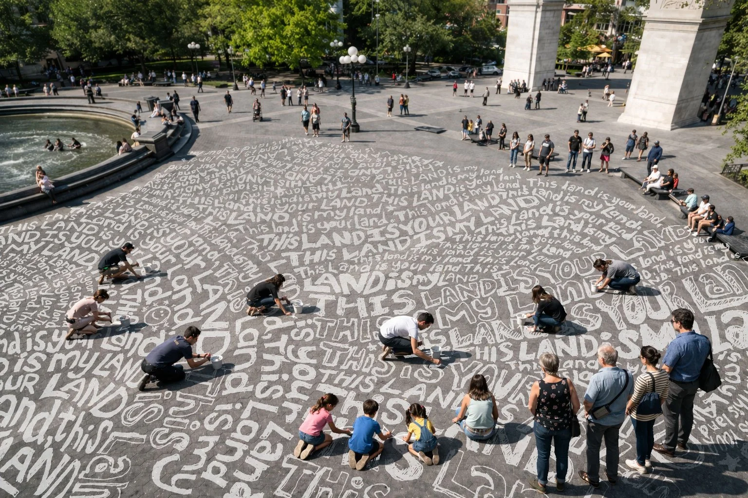 By activating accessible public spaces across New York City through a simple task and the nostalgia of chalk, Our America lowers barriers to participation, inviting broad public engagement and fostering spontaneous, intergenerational dialogue. The project enables community authorship, positioning each participant’s handwriting as both personal expression and collective testimony. As a temporary medium, chalk underscores the urgency and fragility of democratic expression while facilitating low-cost implementation and replication across other cities.